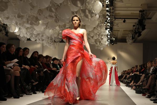 Models present the Spring-Summer 2012 collection of Lebanese designer Georges Chakra in Beirut. Chakra first established his brand in 1985. Georges Chakra is a Beirut-based Lebanese haute couture fashion designer. Since 2001, he has presented collections at Paris Fashion Week.